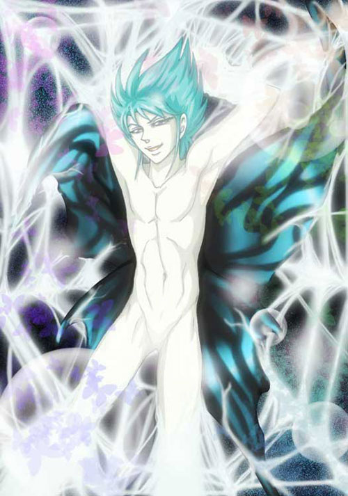 囚われてはいるが決して相手に与したり命乞いしないのがミュー最大の魅力だと思う。 カラリングはカイ様仕様のイメージで。 性器の描写が無いのはミューの中性的なイメージを崩したく無かったのと構成的にあれだなあと思ったから。 でも恥骨は描かれているので何とも中途半端。