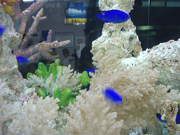 早速ルリスズメダイがお出迎え…。はい、空港の水槽です。