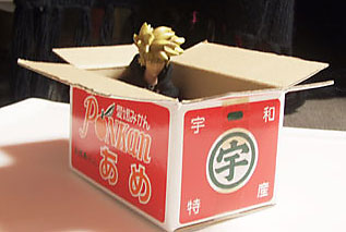 ジャージーズ黄色を入れてみた。尺寸が合わないので大型家電の箱に入ったみたいである。