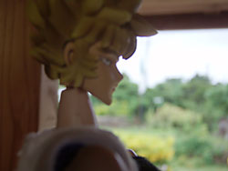 港で台風レポートをやらされたAPラダはチビと和んでいる。