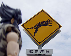 『山猫飛び出し注意』看板。
