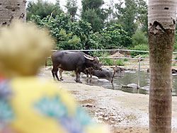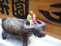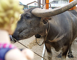 水牛に乗るチビ。