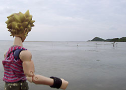 一足先に浜に到着したチビラダですが、