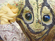 しかも目がガラス玉だ。
