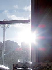 カーテンを閉めて寝なかった為、凄まじい直射日光が。