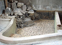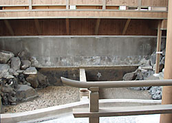 かつてここの温泉は蒸し風呂形式で半分床下に温泉があったと言う。