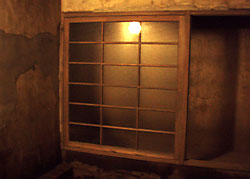 昔の人の知恵で、地上への穴を通してガラス窓で採光していたと言う。