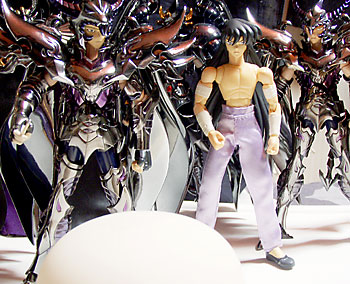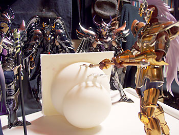 三巨頭に鏡開きを教わる青銅聖闘士。
