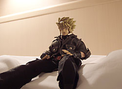 泊まれないと聞いて枕で不貞寝をするラダマイス。