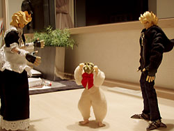 メイド服でドン引きされ、東のラダに擦り寄るチビ。