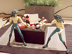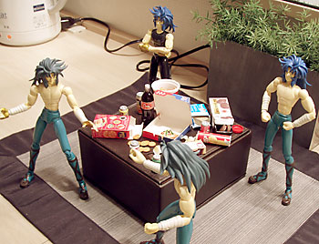 テーブルの四隅を取って双子座対決。