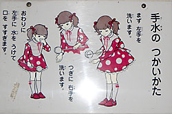 こんなにレトロで可愛い女の子が手水の使い方をレクチャーしてくれてました。