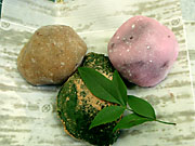 とち餅、シソ餅、よもぎ餅の三兄弟。