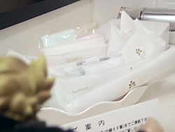 女性客が泊まることを意識してかヘアーゴムを用意する細やかさ。