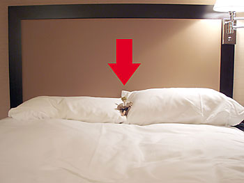 ルームサービスでリネンを交換してくれるので新たな枕となっているのだ。
