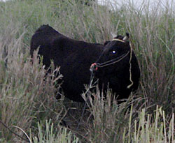 と、そこに牛が。