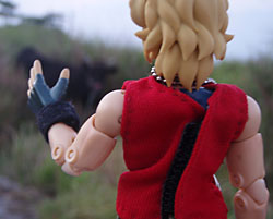 何とチビサガ、ツナギを着ての登場だ。