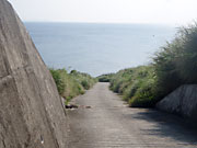 間違ってダゴンの岩場に降りないよう次の道から海に降りる。
