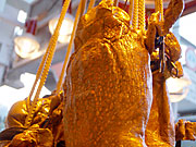 展示が終わると解体してミンチにします。皮はチラガーに。