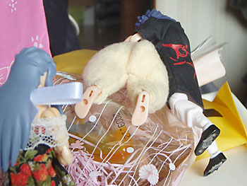 旅行先で疲れてマイス遊戯できなかったのが余程遺恨なのか、帰宅後は戴いたお菓子をネタに遊び倒していました。