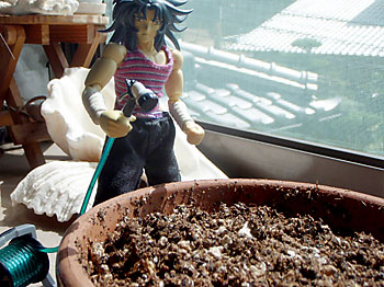 …以前真朱さんより戴いたキャットニップルの種、秋蒔きのシーズンなので早速植えてみました。…勿論カノンマイスが…。