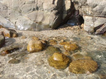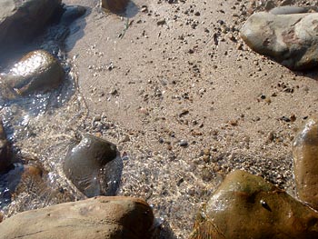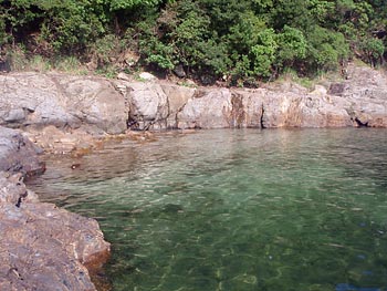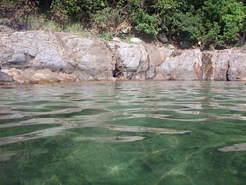 しかし、対岸まで泳ぐのは体力的にごめんだったので、ここは徒歩で沿岸沿いに砂浜まで向かう。