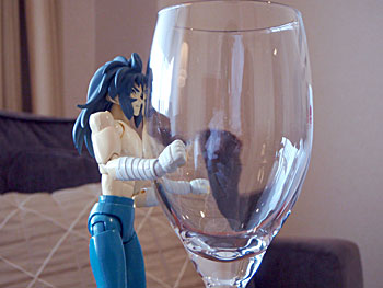 アメニティーのワイングラスに興味津々だ。