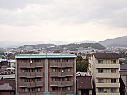窓から京都市内を臨む。