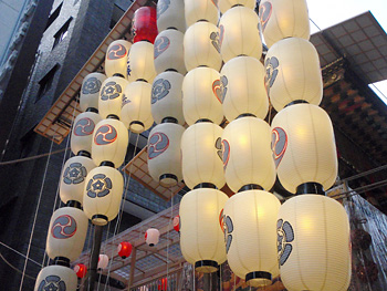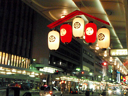 7月になると四条のアーケードもこんな提灯が吊るされて否が応でもムードは高まる。
