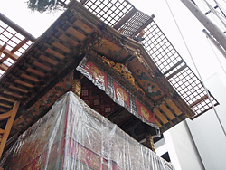 会社の近くにいくつも山や鉾が立っており、7/11日〜に鉾建てが始まって、一帯の小路は殆どの車両が通行禁止になります。