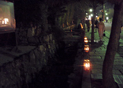 毎年12月中旬に、嵯峨嵐山にて花灯路と言うライトアップイベントが行われる。