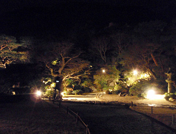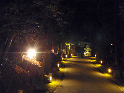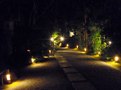 足下のライトアップされた灯籠が幻想的でした。