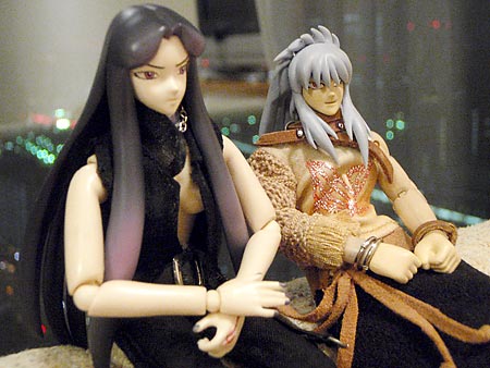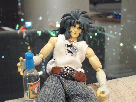品川の夜景をバックに泡盛を嗜む海龍カノン。