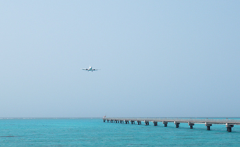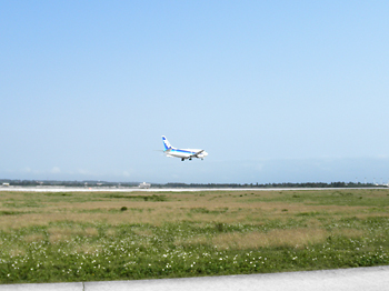 下地島は有名なパイロットの訓練場で、ANAとJAL機が交互でタッチアンドゴーを繰り返しています。