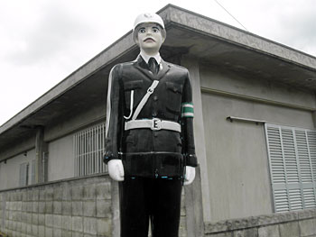 彼は交通安全の象徴、飲酒運転撲滅の警官代わりの見張り番だけではなく、主要道路と認識させるための指標でもあったのか…。