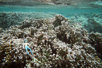 中々見事な珊瑚でしたが、浅瀬過ぎて珊瑚にぶつからないよう泳ぐのが大変でした。
