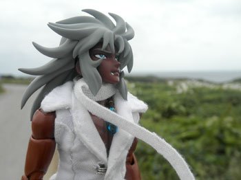 めくれ上がるスカーフそれとなしに風の強さを物語っている。