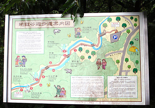 で、雨に見舞われながら、近隣の観光センターで地獄谷へのルートを確認。