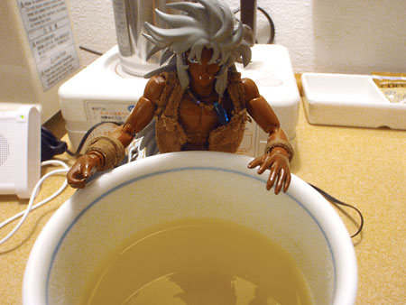 熱いお茶を飲みます。