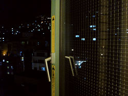 窓ガラスはメッシュ入りで、窓自体半分しか開かなかった。