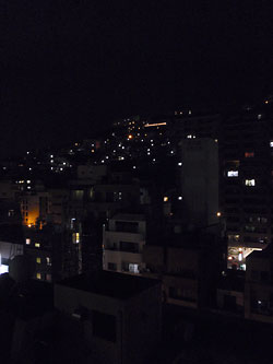 窓から夜景を臨む。