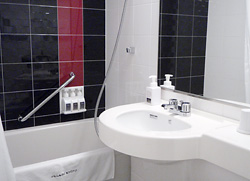 コーポレートカラーを巧みに取り入れた格調高いバスルームです。