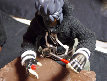 おとなしくマイナスドライバーをノミに粛々とハンマーで砕くアイコ。