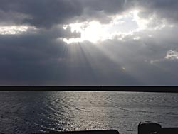西日が雲間から漏れていました。