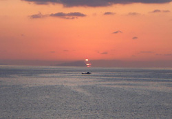 それにしても、早起きして浜に行かなきゃ見れない日の出が、ホテルの部屋からぬくぬくと見られるとは…。