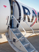 ワイルドに徒歩で飛行機まで向かい、タラップに搭乗だ。