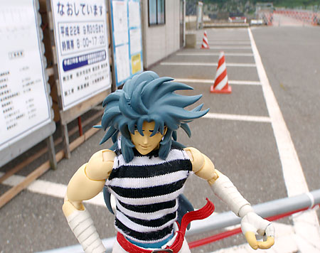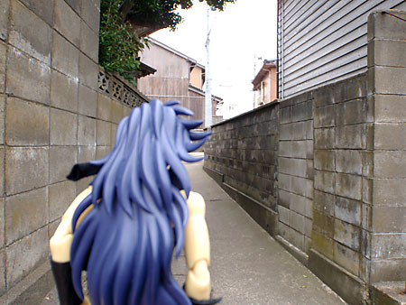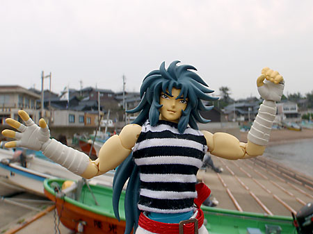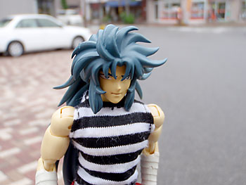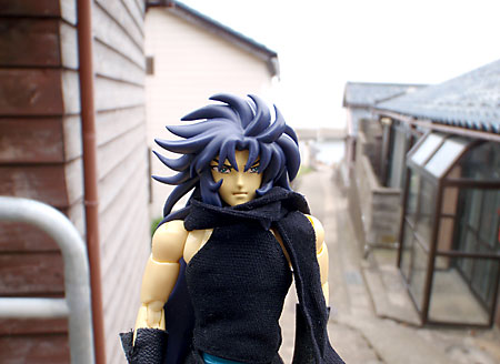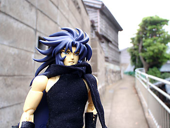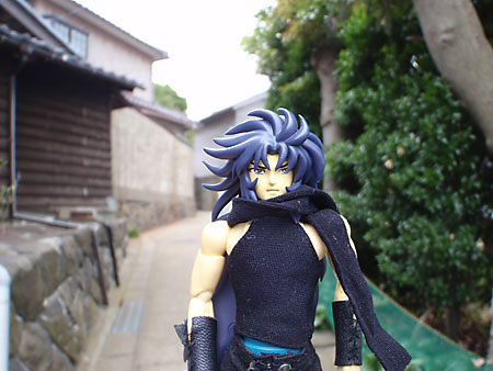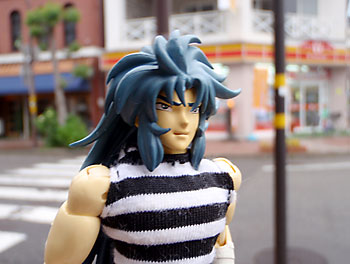 住宅街では不審人物度大の冥闘士サガだ。