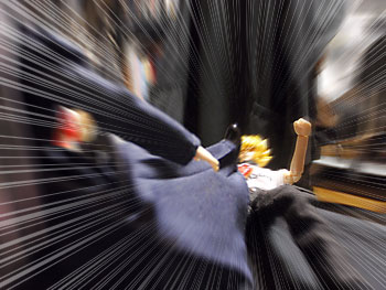 突然の展開される恐怖とバイオレンスの世界に仰け反るチビ。