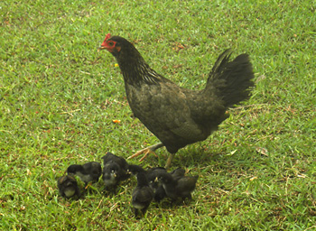 鶏の親子発見。雛が可愛いぜ。