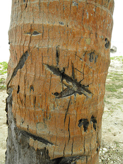 観光客が多いからそうなのか、何か幹が傷付いたヤシの木を多く見受けた。